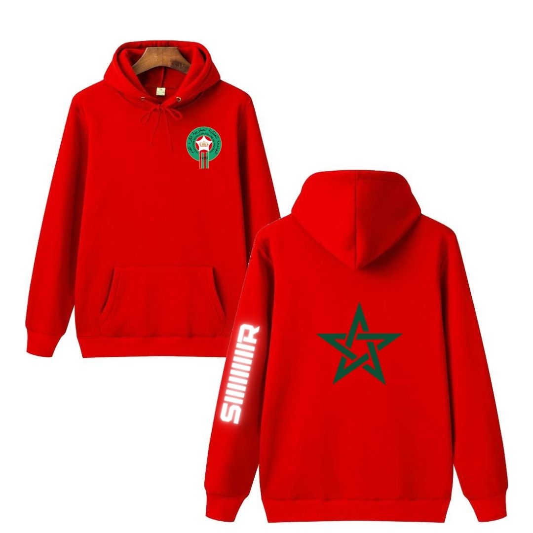 Wrap yourself in passion and pride with the Red Morocco Hoodie, the ultimate fan gear for cheering on the Moroccan team. Designed in bold red with iconic details that shout national spirit, this hoodie is perfect for match days, streetwear, or simply showing love for Morocco wherever you go.